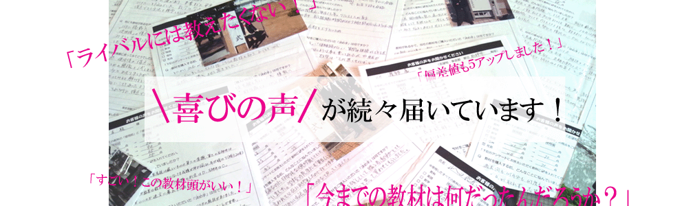 | 【英語】40→65 25点UP 【1教科合計】25点UP 「たくさん教材を見ましたが、公立の傾向をここまで完璧にとらえているのは他にはない」 ![]() ※ お客様の声は、個人の結果・感想であり、同じ効果を保証するものではありません。 |